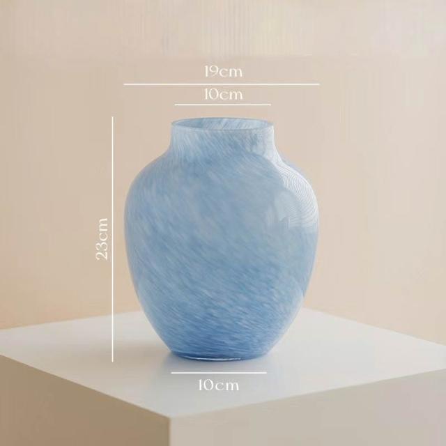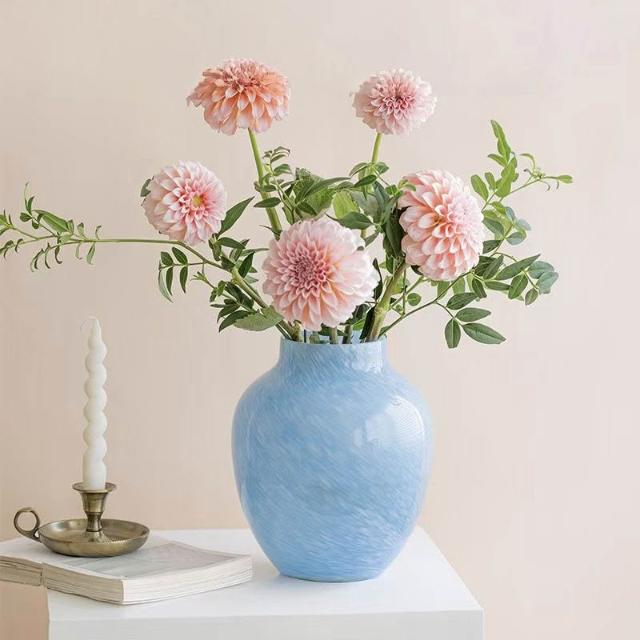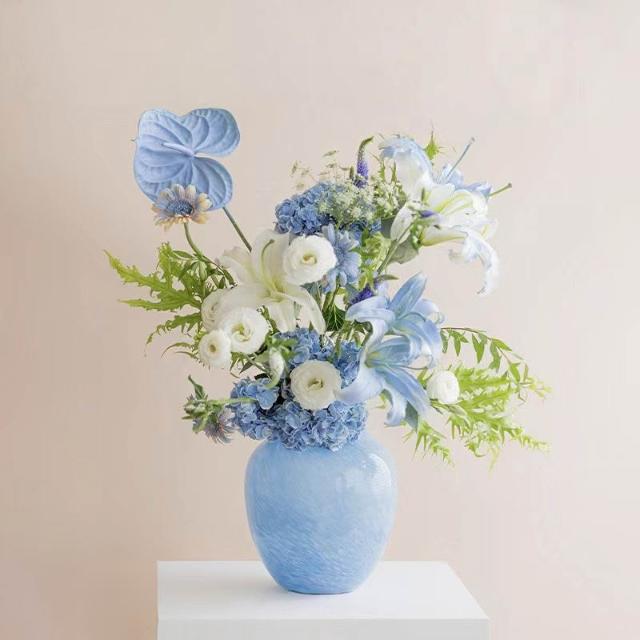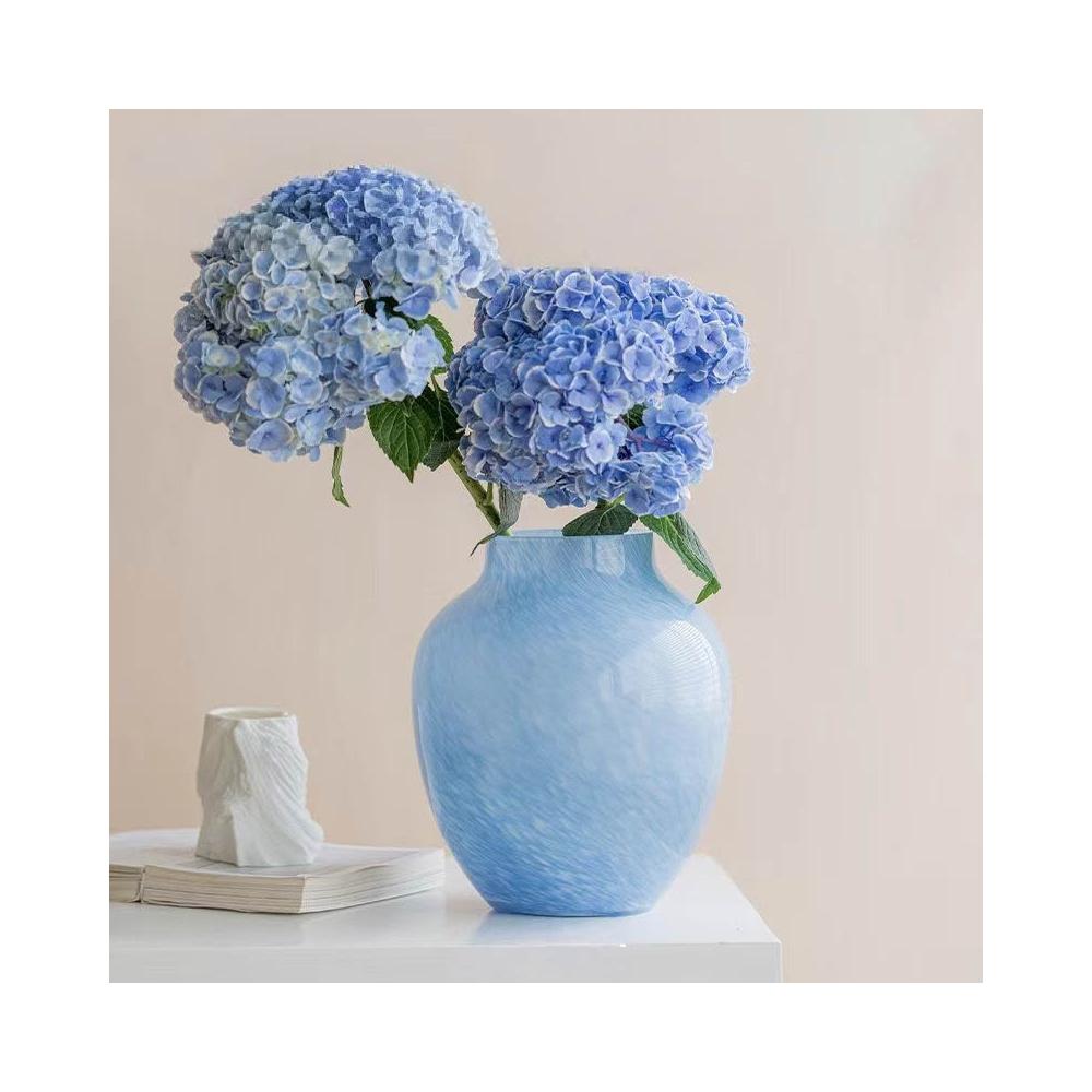 初見紅酒架擺件 花器擺件 桌面裝飾電視櫃裝飾品 現代簡約琉璃花瓶雲霧藍色玻璃客廳四時之序玄關插花擺件喬遷禮物