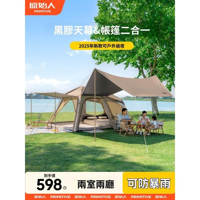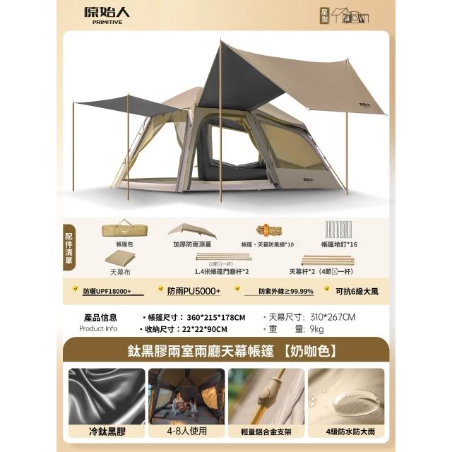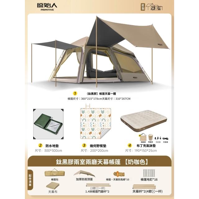 充氣帳篷/ 帳篷戶外野營過夜防雨自動二室一廳露營天幕二合一 /露營帳篷/秒開帳篷/拋帳/野餐/遮陽