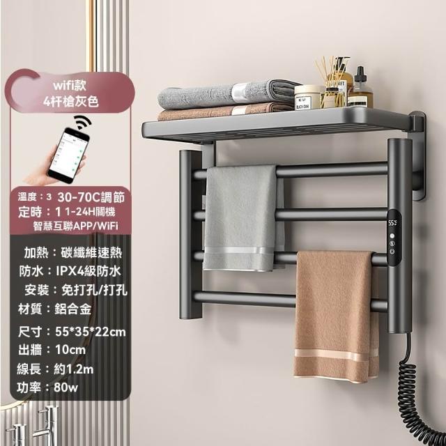 台灣熱銷🔥電熱毛巾架 浴室智能恆溫 電加熱毛巾 烘乾架衛生間 毛巾桿 置物架子 加熱恒溫 烘乾 乾衣架烘乾架 置物架