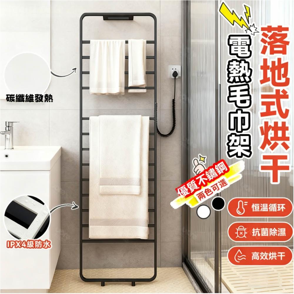智能恒溫🔥落地式 電熱毛巾架 家用衛生間 碳纖維 不銹鋼 電加熱烘乾架 多層浴巾架 毛巾浴巾加熱架 置物架 架烘幹速熱