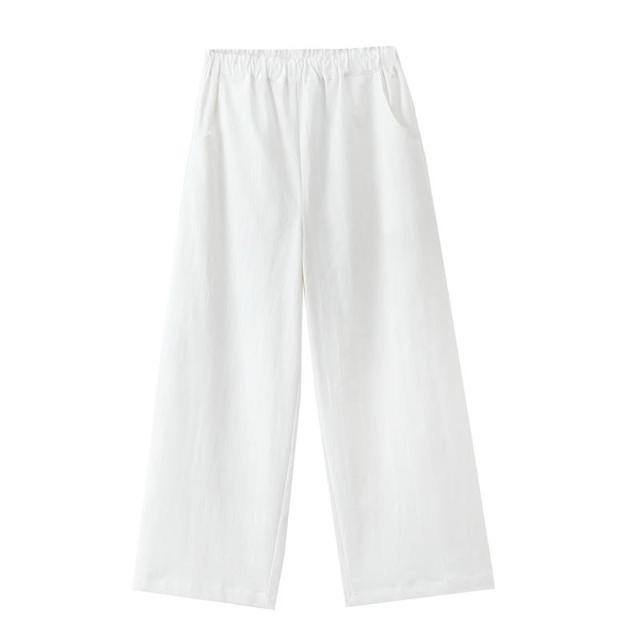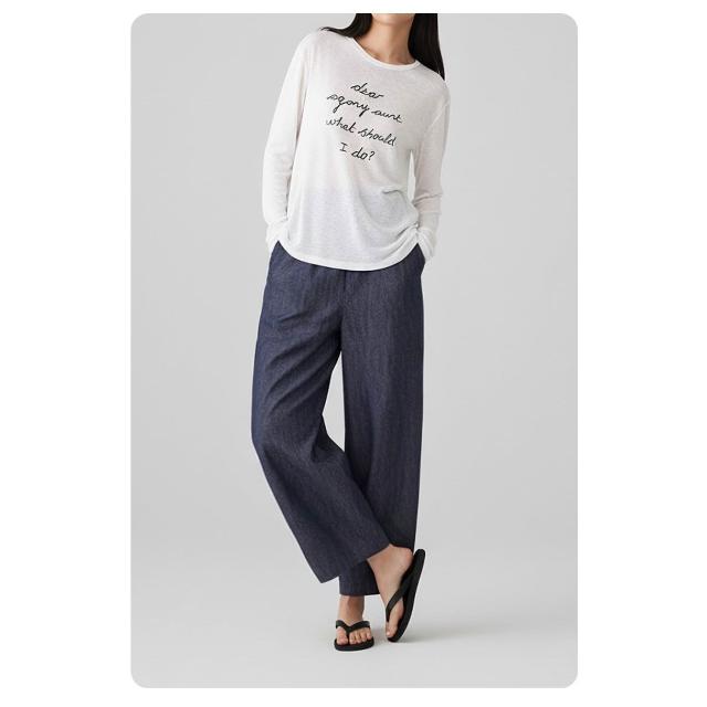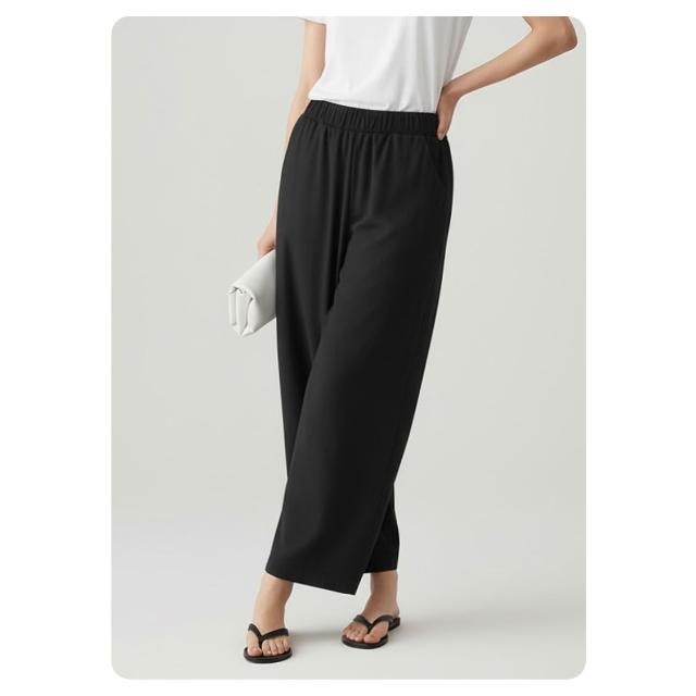 九遇休閒褲 2026夏季新款女裝涼感飛邊腰直筒九分褲薄款寬松休閑小個子闊腿褲