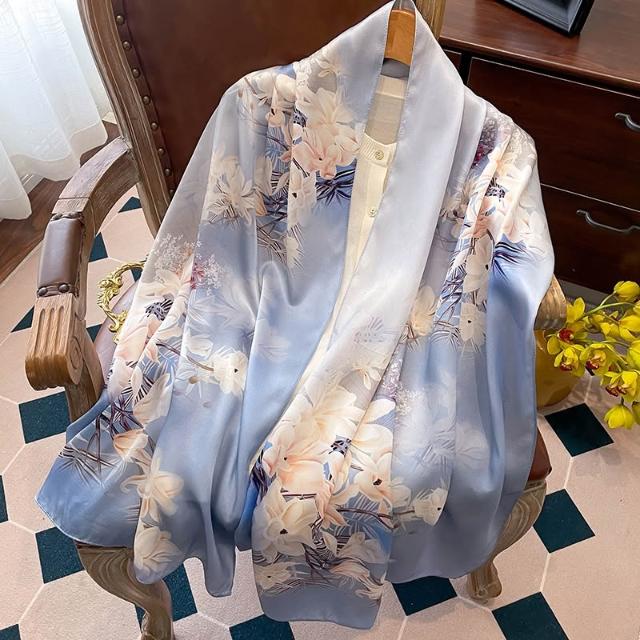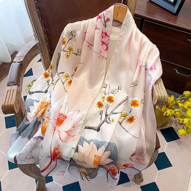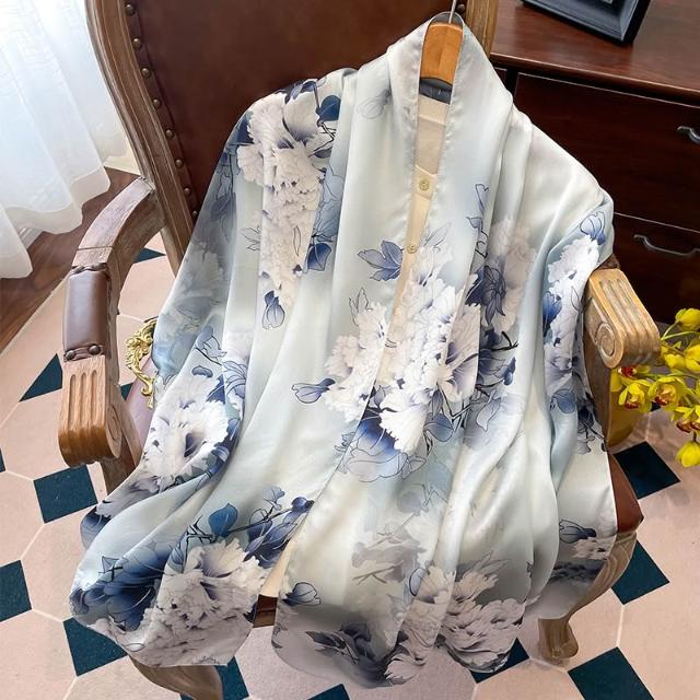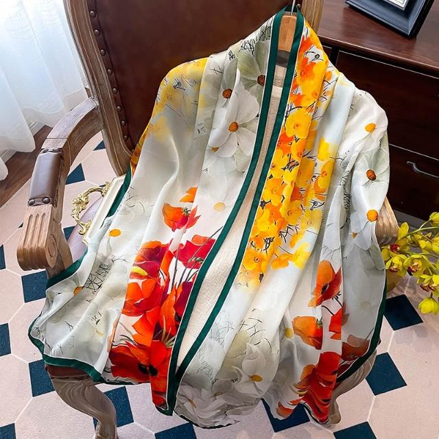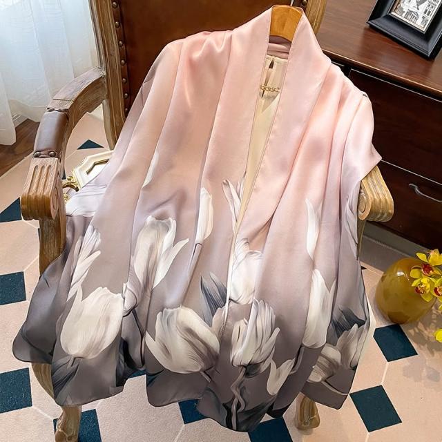 九遇絲巾 高檔真絲油畫綠色絲巾女2025新款長條桑蠶絲送禮媽媽禮物披肩圍巾