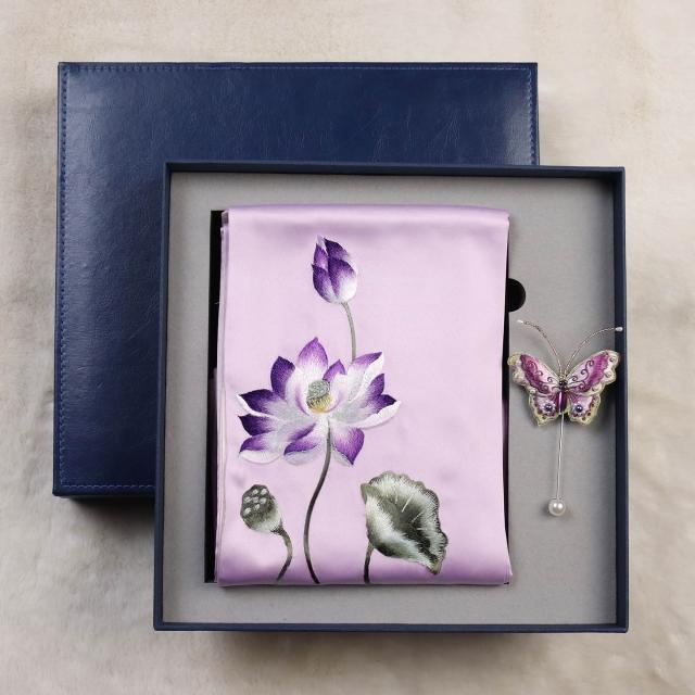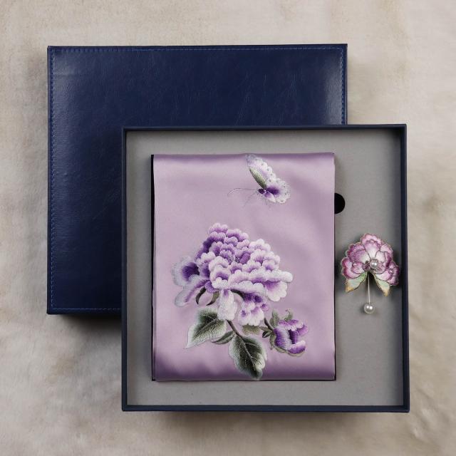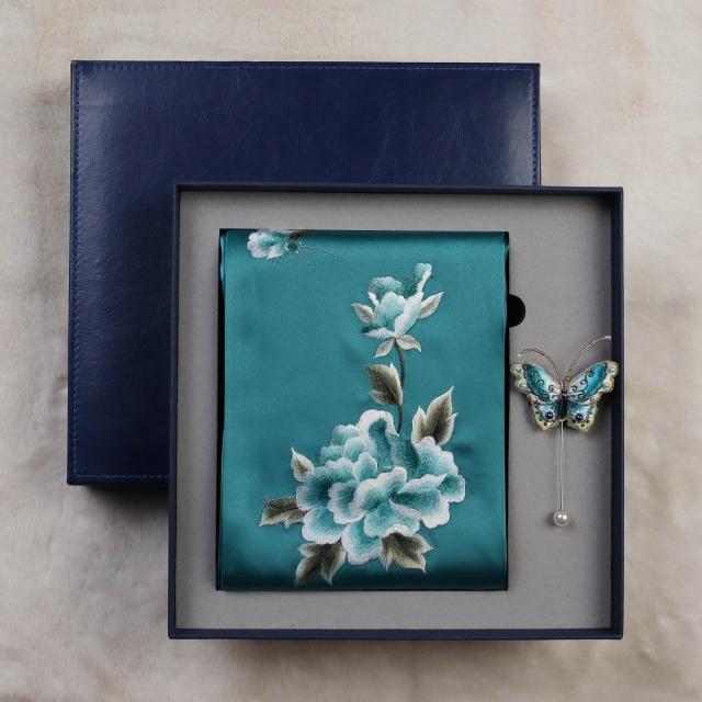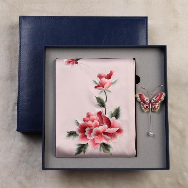 九遇絲巾 刺繡圍巾女士絲綢手工蘇繡絲巾國風旗袍披肩禮盒送長輩媽媽禮品