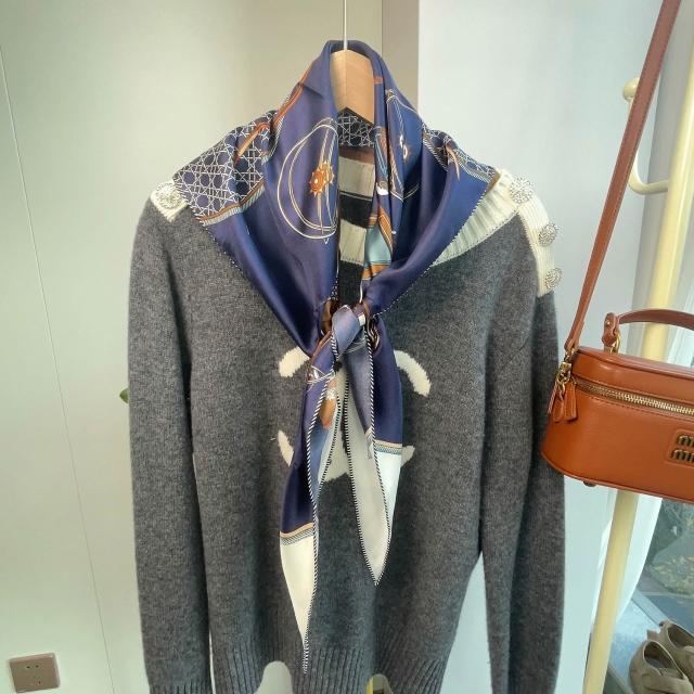 星禾 絲巾 春款真絲斜紋綢三角巾桑蠶絲絲巾直播服裝配飾腰果花包頭圍巾百搭