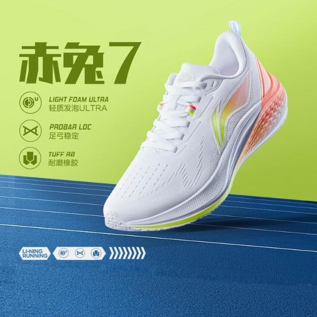 LI-NING 李寧LI-NING 李寧LiNing李寧 赤兔7 休閒百搭 體測體考 中考競速訓練 舒適回彈減震防滑輕便 低幫 休閒跑步鞋 女款 白橘 ARPV024-1