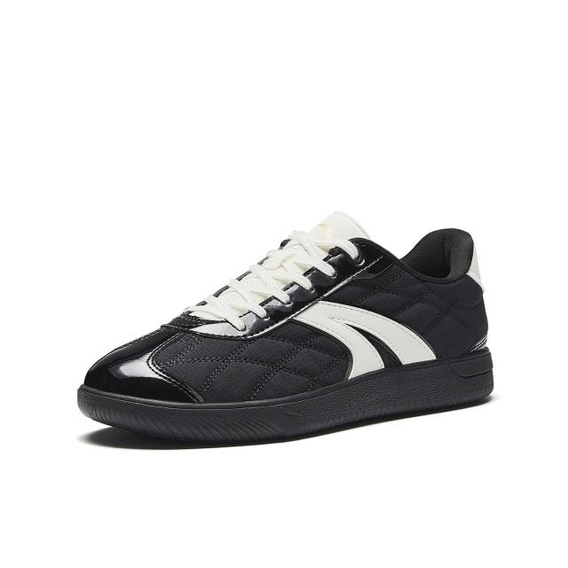 ANTAAnta安踏 TT鞋系列 小香風 漆皮鞋頭 韓系少女風 復古薄底德訓 秋冬簡約百搭 減震耐磨 低幫 板鞋 女款 黑白 922618002-2