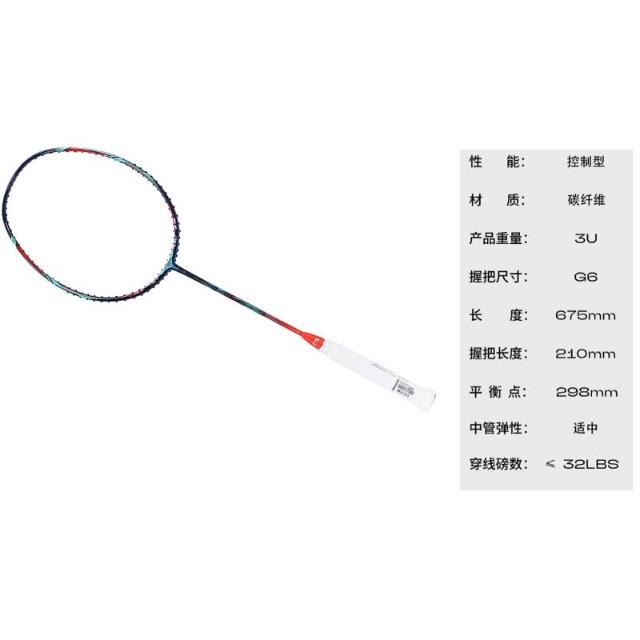 LI-NING 李寧LiNing李寧 風動9000C 全碳素羽毛球拍 超輕 耐打 柔韌專業級675mm 單拍藍紅色 AYPP122-1000
