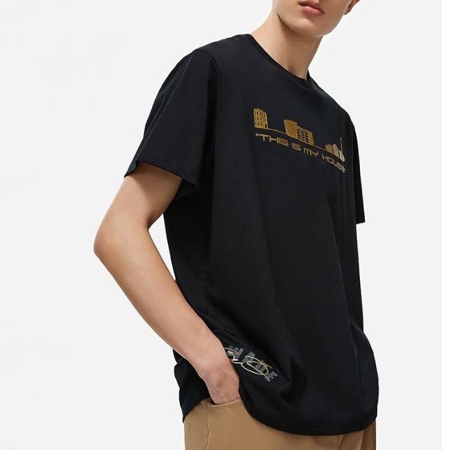 LI-NING 李寧AHST939-2 LiNing李寧 韋德系列 韋德名人堂 字母印花運短袖T恤 男女同款 黑色帶