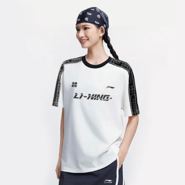 LI-NING 李寧AYSV013 LiNing李寧 桌球系列 短袖男女同款夏季圓領體恤美式復古寬鬆休閒上衣速幹運動T恤 男款