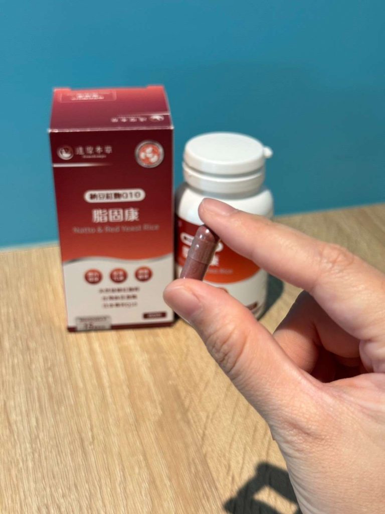 所以我幫她挑了一個針對代謝的保健品:達摩本草 脂固康 納豆紅麴植物膠囊。