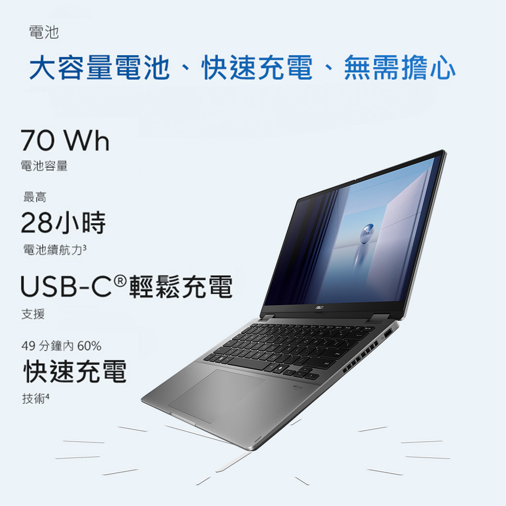 🔋不論使用者是行動工作者、需跑業務的商用人士、設計/剪輯師等,皆可滿足需要長效續航力的需求。 我擁有70Wh大容量電池,最長電池續航力可達28小時,且具有快充能力。