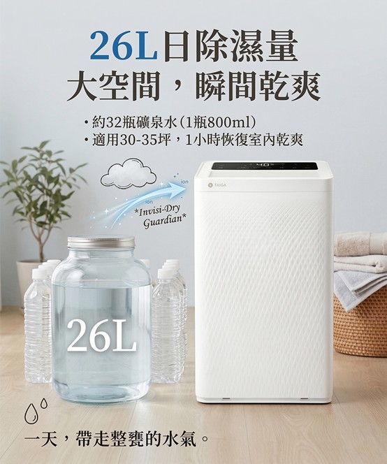 ✅ 26L 強力除濕|日除濕量高達 26 公升,對抗梅雨季、潮濕冬天的終極武器!