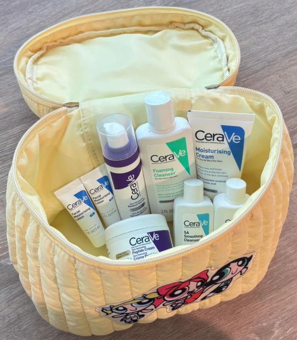 再看一次~ 買兩罐就送這麼多小樣,還有獨家限量飛天小女警化妝包!這包包真的不只是虛有其表,它的超大容量完全是收納救星!實測發現,不只這次禮盒送的潔膚露、保濕乳、修護霜等 5-6 樣贈品能通通「一包打包」,甚至連原本的正貨放進去都還有空間。大開口的設計找東西超直覺,不管是日常化妝品收納還是出國旅行,這咖可愛又耐裝的神包絕對是妳包包裡的「最強裝備」!👜✨