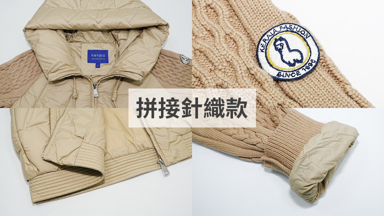 【優雅知性之選:拼接針織連帽羽絨外套】