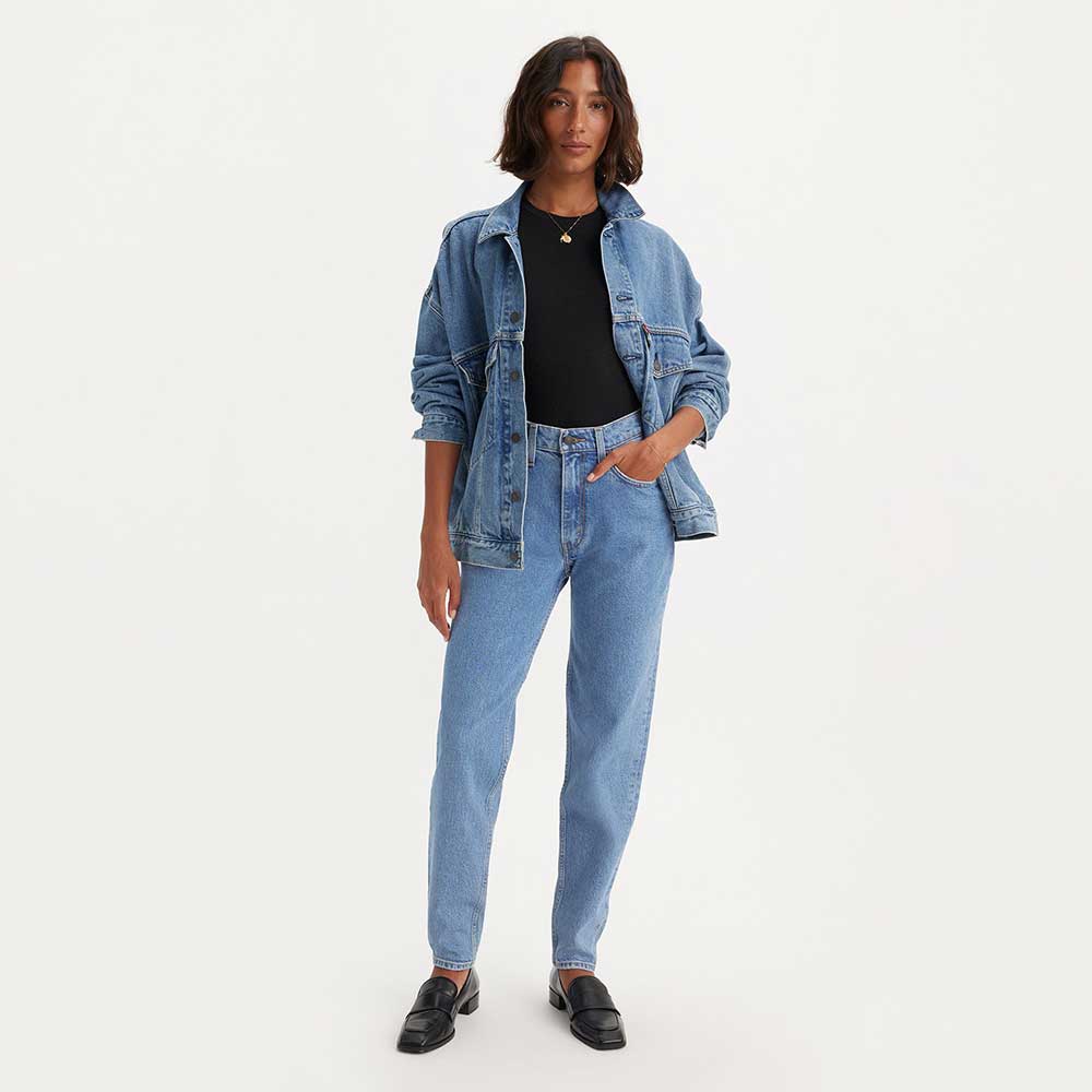 - 版型特色:80 年代復古風回歸!高腰設計搭配寬鬆褲管,修飾大腿與臀部,同時展現隨性不羈的氛圍。