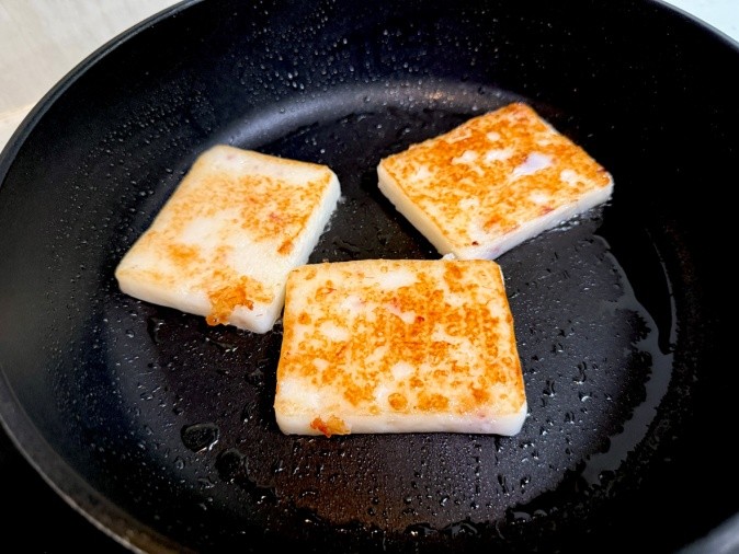 下鍋一煎,外皮立刻變得金黃酥脆,