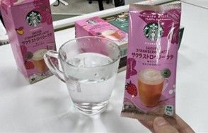 沖泡超簡單,拿出一包櫻花草莓風味拿鐵,加入180ml的熱水