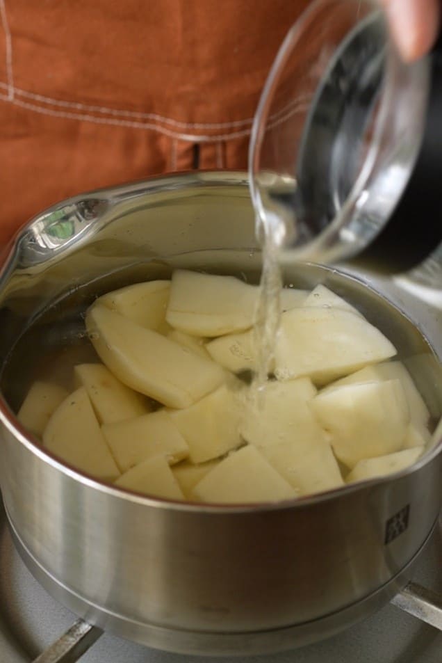 1.先把食材們都切一切 2. 然後把馬鈴薯丟進鹽水裡煮透