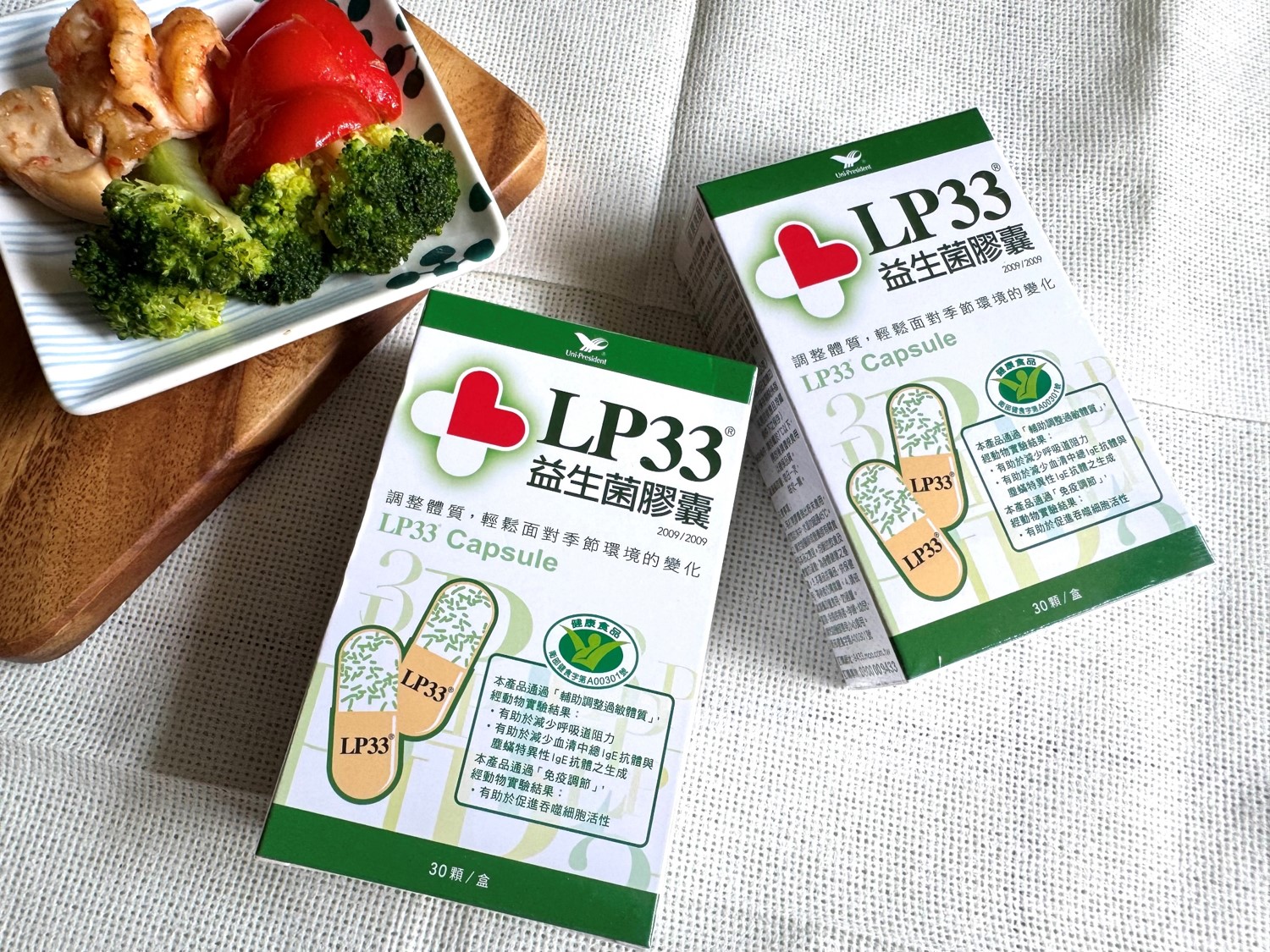 其實我之前一直以為LP33只有優酪乳,後來在找尋關於過敏或蕁麻疹相關症狀的解方時,發現許多網友都在推薦長期吃LP33一年就可以改善,也才知道原來LP33也有出益生菌膠囊,因為是大廠製造,每一批都有檢驗報告,而且有拿到健康食品標章(輔助調整過敏體質+免疫調節 雙重功效),我才開始嘗試吃。