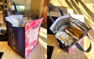 開箱時有贈送專屬保冷袋,實品漂亮又有質感,出門購物短時間保冷,非常實用。
