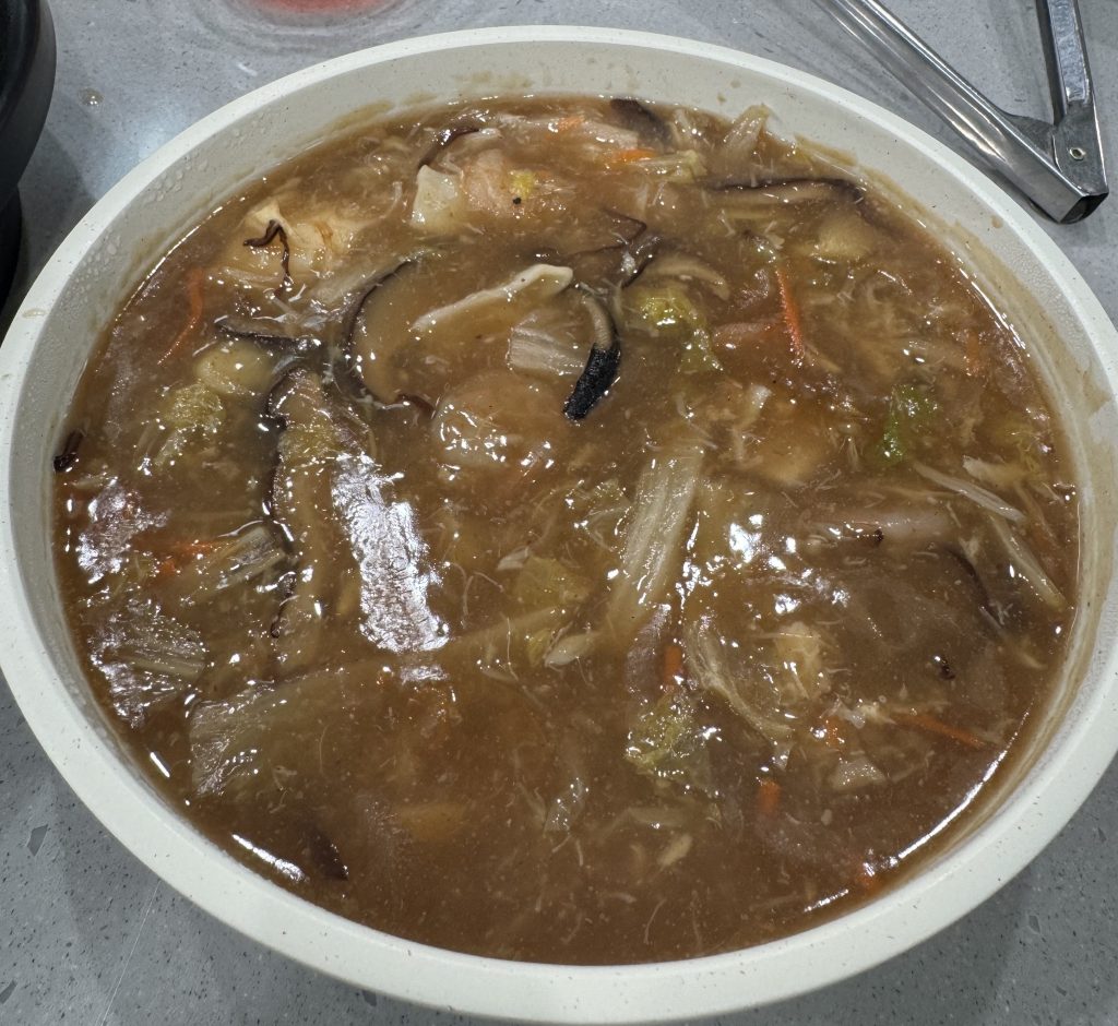 干貝海鮮羹 湯跟料包分開包裝,食材用料超豐富,裡面有蝦仁、柱貝、香菇、白菜等等,有再加上附贈的紅醋,完全超百搭,配飯吃也是直接嗑一碗!