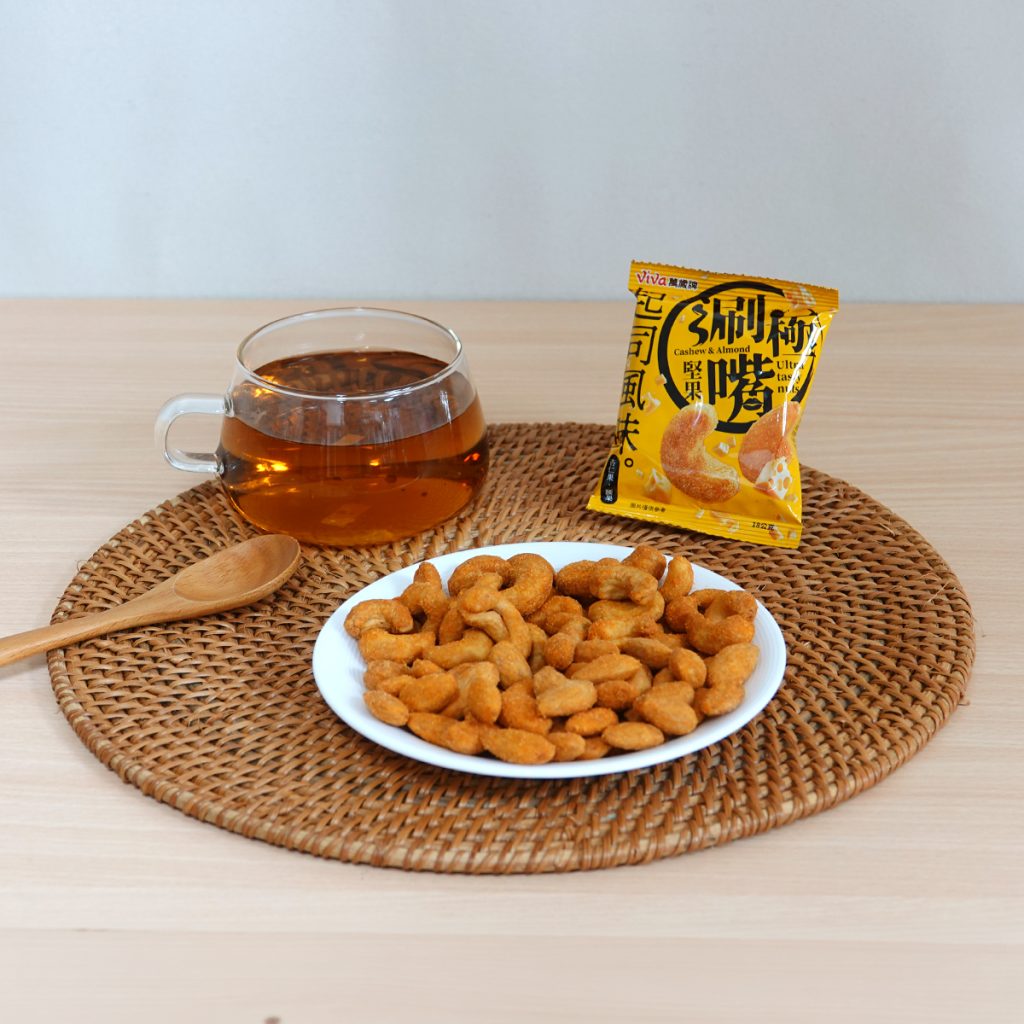 兩種堅果的口感也恰到好處地互相交錯,一個偏鬆脆、一個偏扎實,與糖衣和起司味融合後,口感層次分明又立體,越嚼越涮嘴,不會過鹹或膩口,讓人忍不住一口接一口!