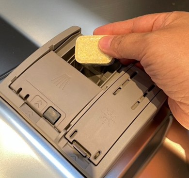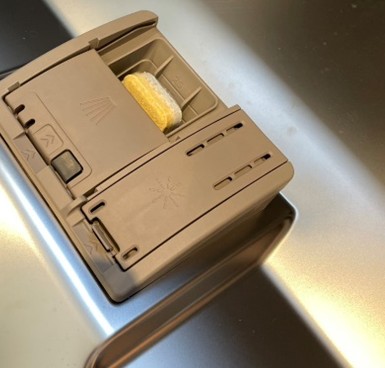 最讓我著迷的就是 省事。Dalli 是單顆多效濃縮設計,不用再左手拿鹽、右手倒潤乾劑。只要一顆放進粉盒,外層膜自動溶解,洗程結束碗盤全乾淨。