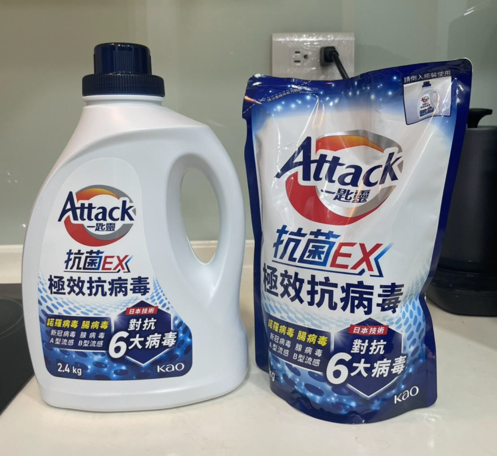 就是這瓶 -【Attack 一匙靈】極效抗病毒洗衣精!光看包裝就覺得信心十足,完全是為了我們這種經常出沒公眾場合的上班族設計的。這款最強大的地方在於它不只抗菌,還能抗病毒!經權威機構認證,能有效對抗 諾羅病毒、新冠病毒、A型/B型流感、腸病毒、腺病毒 等6大病毒*。對於很怕得到流感不能當社畜會有太多工作做不完的我來說真是太讚了,新包裝看起來也讓人覺得超有感! 至於基本的去味除臭,剛好前一天週末天氣冷去吃火鍋,厚重的衣服上面都是濃濃的鍋味殘留,就讓我立刻試用看看,洗完以後能不能成功讓冬衣變超香,不能留下一絲火鍋線索。