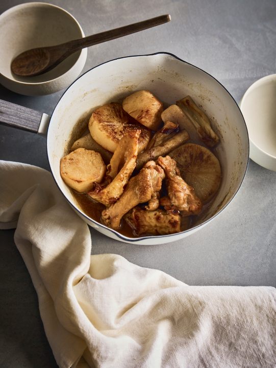 最後附上我廚藝不佳照起來不美,但實際上真的非常好吃又入味的蘿蔔燉雞,搭配落蓋的使用,原本要燉煮很久才會入味的蘿蔔,大約20分鐘不到就已經軟且入味。