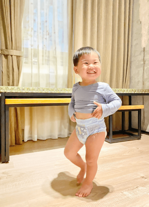 小孫目前一歲10個月已經14公斤了,腿褲非常健壯,我最擔心他睡覺時,會因為長時間穿尿布有勒痕,所以在挑選尿布上都會特別注意腿圍的部分,且之前月中的護理師也有教說,尿布一定要檢查腿部有沒有順好才防漏,滿意寶寶晚安褲跟其他滿意寶寶系列產品一樣,防漏上都做得很好,貼心的設計了兩層寬版腿圍,而且還是超強彈性,不管寶寶睡覺怎麼翻,都還是非常非常服貼腿腿肚肚沒有縫隙,穿起來又很舒適,不怕太緊有勒痕或太鬆會外漏。