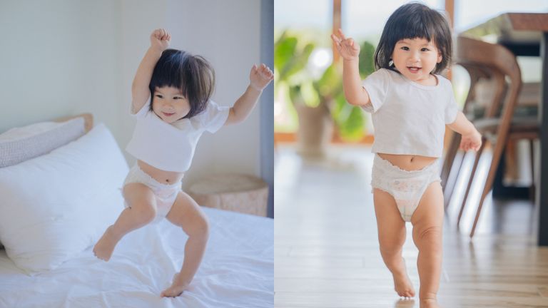 珊瑚一歲後,我就把她的尿布從黏貼式全面更換成拉拉褲,主要是因為自從珊瑚開始會走、會跑後,根本不可能乖乖躺好讓我換尿布,但換成一級幫拉拉褲後,無論是躺著穿、坐著穿、趴著穿、站著穿甚至邊跑邊穿,通通都沒有問題!