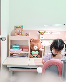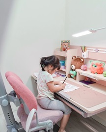 當Dou寶開始上幼稚園時,便為她準備了成長天地的成長型桌椅