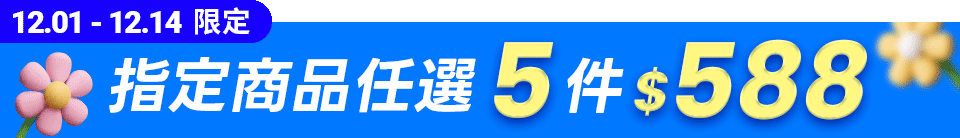 本促銷活動任選5件,享優惠價588元 活動商品。