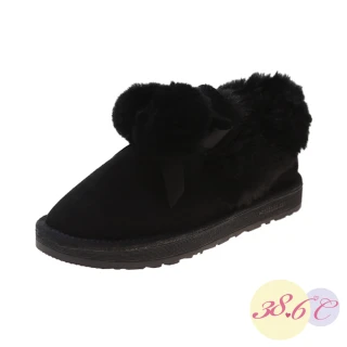 【38.6°C】平底雪靴 短筒雪靴/可愛小雪球造型毛絨短筒雪靴(黑)