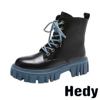【Hedy】厚底馬丁靴 馬丁靴/潮流撞色大圓頭個性厚底馬丁靴(黑)