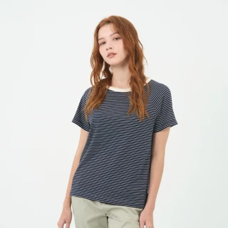 【GIORDANO 佐丹奴】女裝條紋圓領短袖上衣(69 標誌海軍藍X奶白)