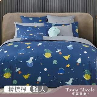 【Tonia Nicole 東妮寢飾】活動品-環保印染100%精梳棉兩用被床包組-太空寶貝+龍龍迪諾兩用抱枕毯(雙人)