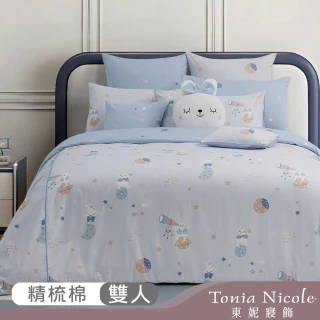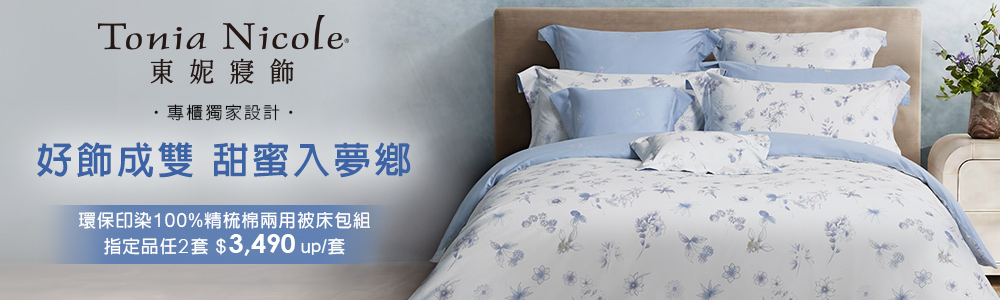 【Tonia Nicole 東妮寢飾】活動品-環保印染100%精梳棉兩用被床包組-月色花境(雙人)