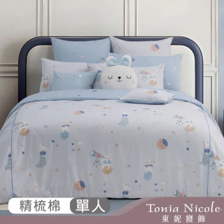 【Tonia Nicole 東妮寢飾】活動品-環保印染100%精梳棉兩用被床包組-魔法夢奇地+魔法兔兔兩用抱枕毯(單人)