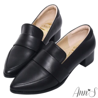 【Ann’S】時髦復古2.0-頂級綿羊皮韓系粗跟樂福休閒便鞋3.5cm(黑)