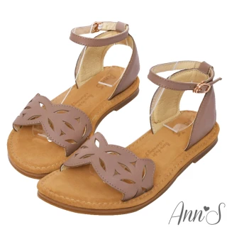 【Ann’S】水洗牛皮-雷射雕花繫帶圓頭平底涼鞋(棕)