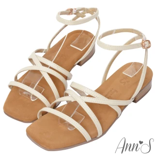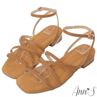 【Ann’S】水洗牛皮-全真皮多層交錯細帶木紋跟方頭涼拖鞋(奶茶杏)