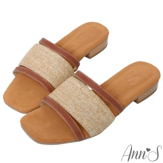 【Ann’S】水洗牛皮-小清新麻料木紋跟方頭涼拖鞋(棕)