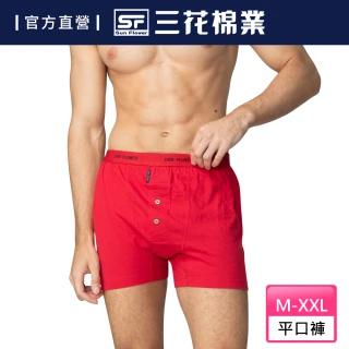 【Sun Flower三花】五片式針織平口褲.男內褲_紅色(純棉男四角內褲/專利五片式平口褲/四角褲)