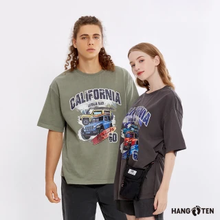 【Hang Ten】中性款-韓國同步款-寬鬆純棉越野吉普車印花短袖T恤(多色選)