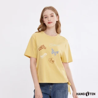 【Hang Ten】女裝-蚊蟲防護下擺綁結胸前印花短袖T恤(淺黃)