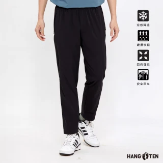 【Hang Ten】男裝-恆溫多功能-TAPERED FIT四面彈涼感吸濕排汗錐形長褲(黑)