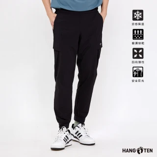 【Hang Ten】男裝-恆溫多功能-JOGGER FIT四面彈涼感吸濕排汗側口袋束口褲(黑)