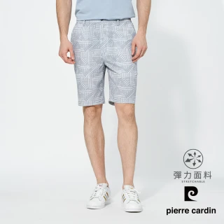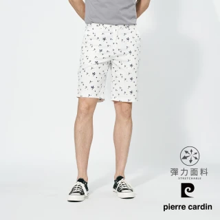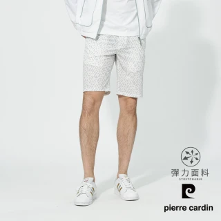 【pierre cardin 皮爾卡登】休閒服飾 男款 彈力印花平口休閒短褲-白色(5257962-90)