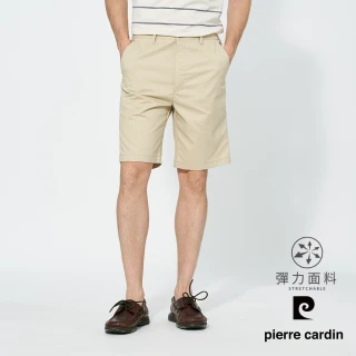 【pierre cardin 皮爾卡登】休閒服飾 男款 側鬆緊彈力平口休閒短褲-卡其色(5257961-84)